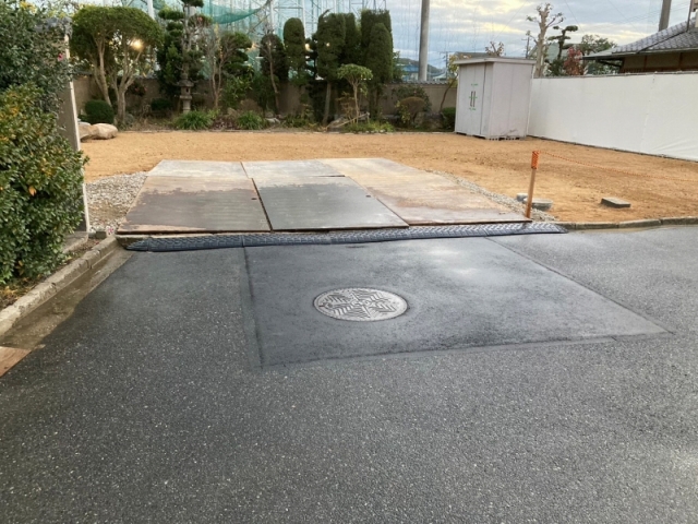 車両の出入りが多い狭い所なのでしっかり注意を払って作業しとります!!